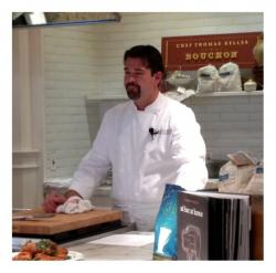 Une grande #AlerteNerd #Nourriture se passe ici !! Je suis allée à Williams Sonoma pour un peu d'huile d'olive et je suis tombée sur un cours de cuisine @BouchonBH avec le Chef Rory. ET il faisait du poulet frit !!! #Préféré #Fangirling
