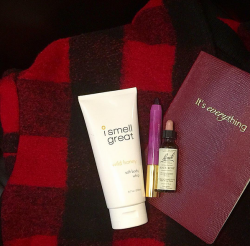 L'huile essentielle, le journal hyperbole, manteau laineux, lèvres prune, et hydratant pour le corps #WildHoney de @ismellgreat pour une peau saine ? Ouais. Je suis prête à affronter le week-end et le grand (gratte-ciel) air ! Trouvez votre excellence et gardez votre peau heureuse sur ismellgreat.com #VendrediFondatrice #WeekEndDeGuerriers #SecretsDeBeautéPasTellementSecrets